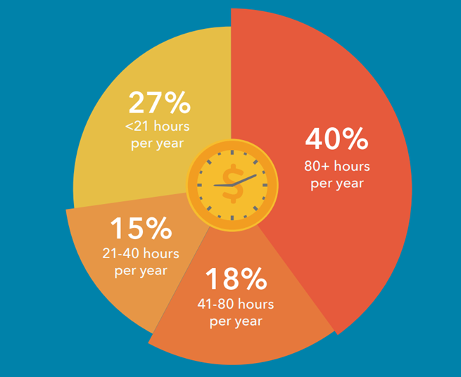 Selon des recherches récentes, les petites entreprises consacrent en moyenne 15 à 16 heures par semaine à des tâches administratives, soit l'équivalent de deux journées de travail complètes ou 19% de leur temps. En termes financiers, cela représente une perte d'environ 14 857 dollars par an.